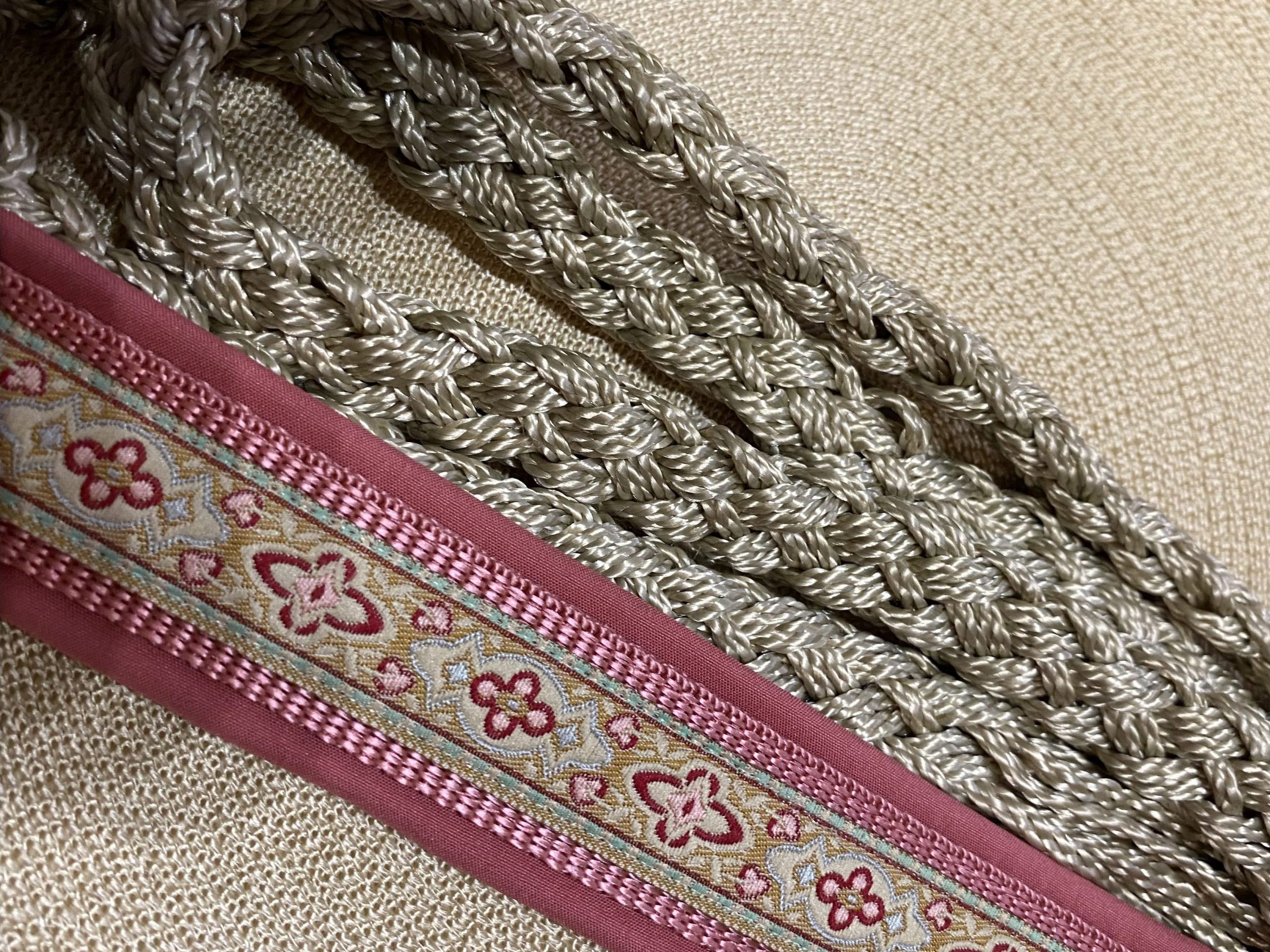 Halsband, Geschirr und Segeltauleine in Rosatönen.